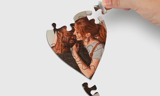 Você já imaginou um presente super diferenciado e divertido? O Quebra-Cabeças personalizado em formato de coração é isso! Ele é perfeito para presentear a mamãe ou o crush. Eles vão se surpreender quando as peças começarem a formar um coração! Escolha entre 15, 60, 120 ou 200 peças. Os quebra-cabeças com foto em formato de coração tem acabamento laminado brilho aplicado a peças de papelão rígido e acompanha uma caixinha para guardar as peças com a mesma imagem de referência.