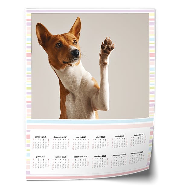 Calendário de Parede é um indispensável na casa. Além de importante para organizar os seus compromissos, ele decora o ambiente com a foto daquele momento inesquecível. O calendário de parede é impresso em papel couché 250 g/m² e você escolhe se prefere na posição vertical ou horizontal. Crie o seu agora mesmo!