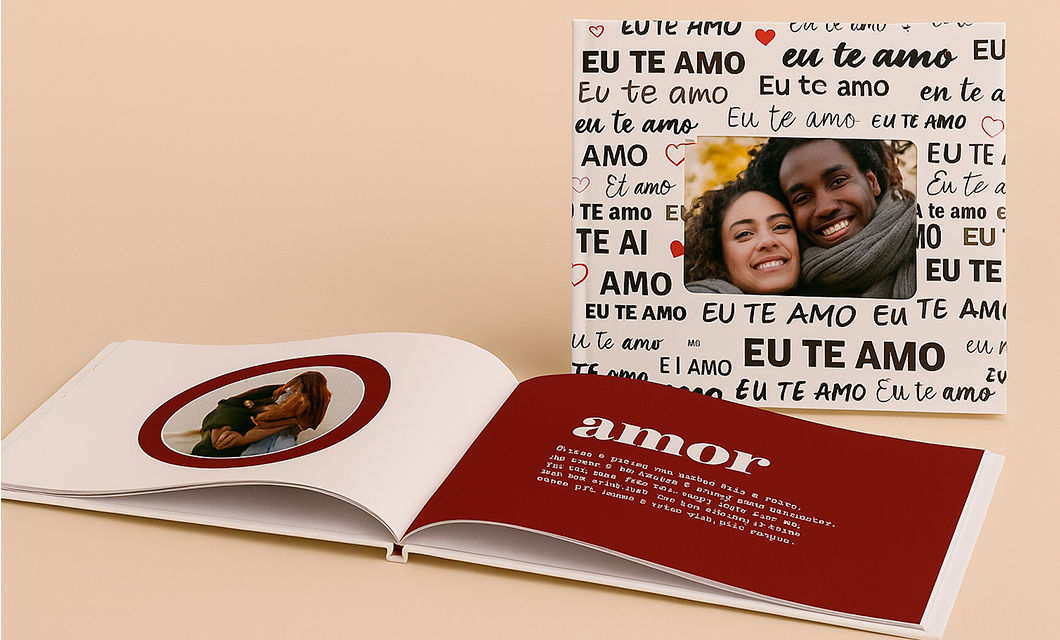 • Capa dura com uma janela central por onde se pode visualizar a imagem diagramada.